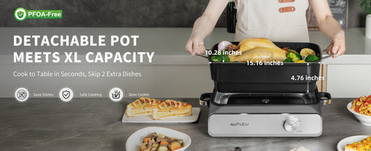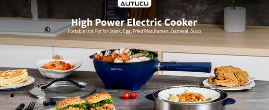 Electric Skillet 6-Quart Hot Pot Nonstick - PFOA-Free Ceramic Coating Pot, 1600W, Timer & 3 Power Settings for Steak, Egg, Ramen