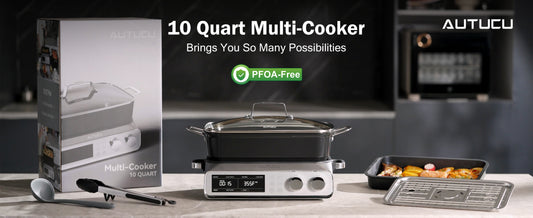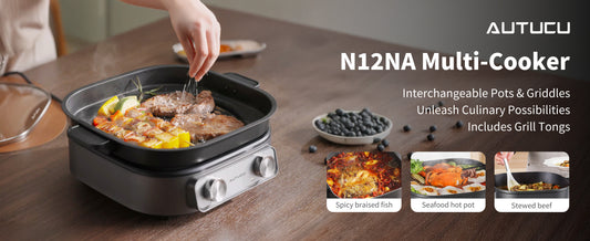 N21NA Pro Slow Cooker 10 Quart, 8-in-1 Programmable PFOA-Free Ceramic Coated Multi-Cooker with Grill Pan, Steaming Plate (Includes Silicone Spoon & Tongs)