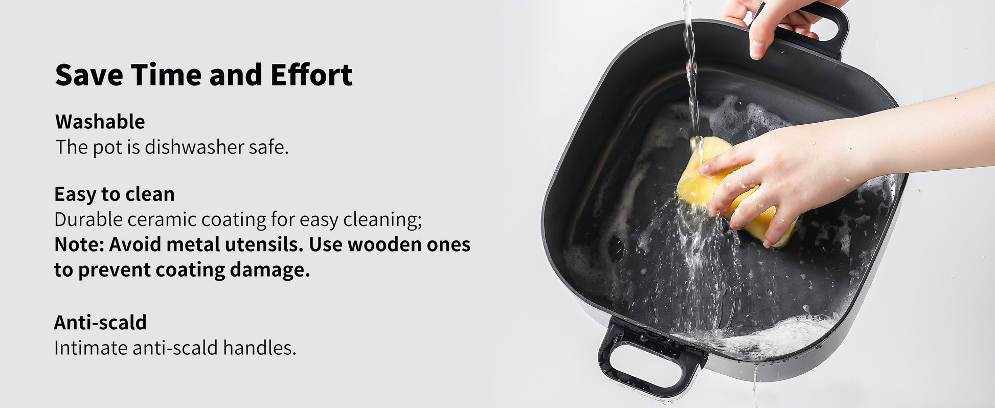 - 【Large & Stylish Design】 6-quart (3.5-inch deep) capacity pot fits family-size meals. The removable pot is dishwasher-safe, while the sleek modern design makes it a perfect table centerpiece.